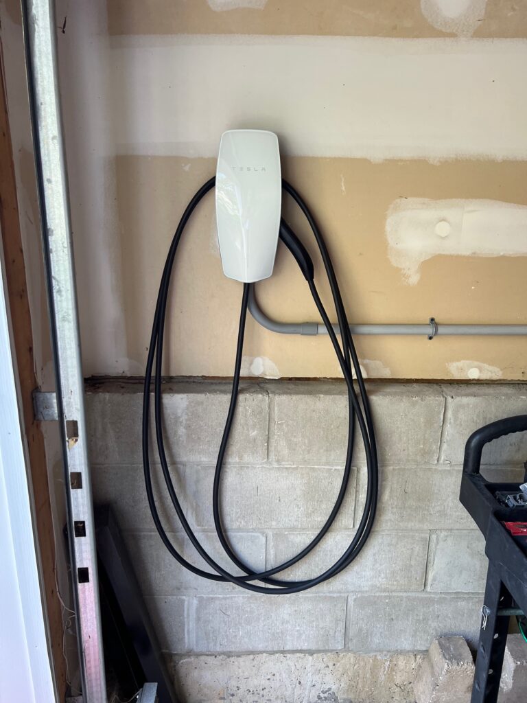 Another townhouse installation in Paramus, this time a Tesla Wall Connector. As usual, the townhouse association does not allow EV Chargers to be installed on the outside of the townhouses so we install the charger right next to the overhead door inside the garage. This allows people to charge their EV while parked in the driveway.